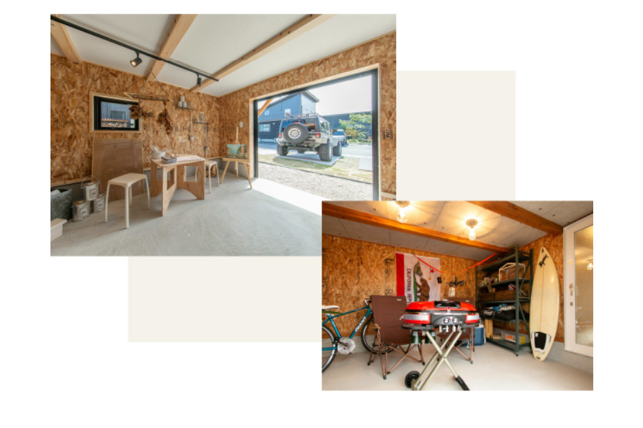 スキップフロア構造だからつくれるボーナス空間。 バイク・釣り・サーフィンに趣味をおもいっきり楽しむ空間に。
