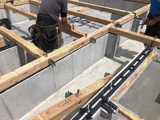 土台の上に構造用合板を貼って、土台据え工事終了です。