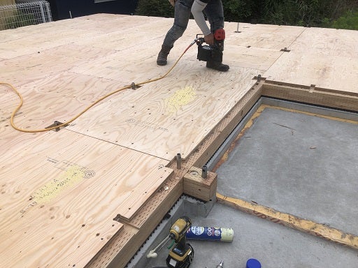 構造用合板も釘の長さや間隔も規定通りになっているのを確認しております。