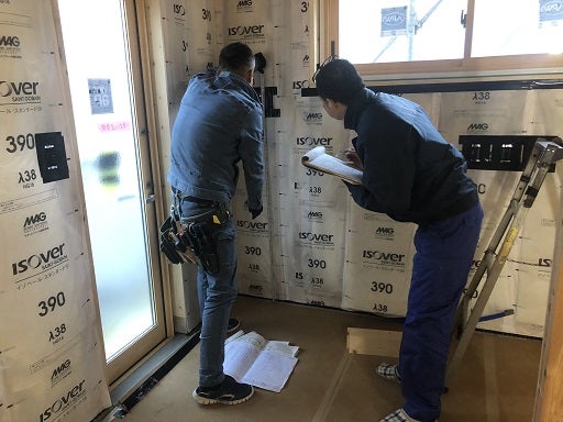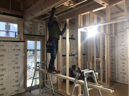 内部も外部も工事は順調に進んでいます。外部では、外壁を貼る前の下地工事を進めています。