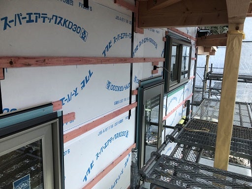 検査合格後、早速外壁を貼り始めました。全面に施工されるのが楽しみです。