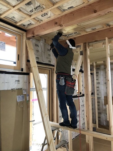 現場内は無垢の木の香りに包まれて、とても気持ちがいいです。