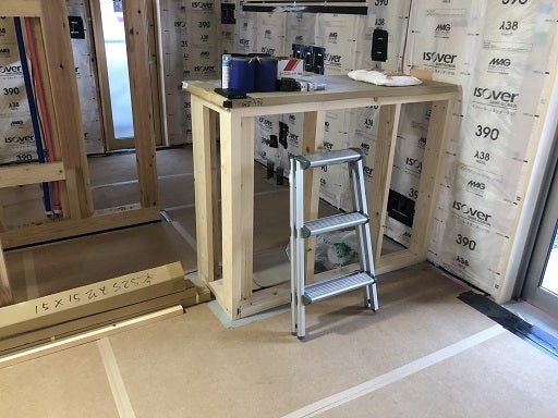 この後は壁のプラスターボード貼りを進めていきます。