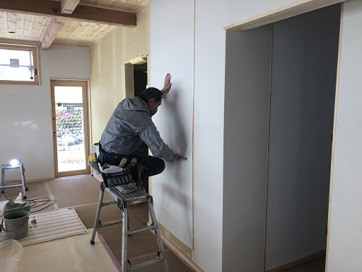 内部では壁紙貼り工事が終了しました。
