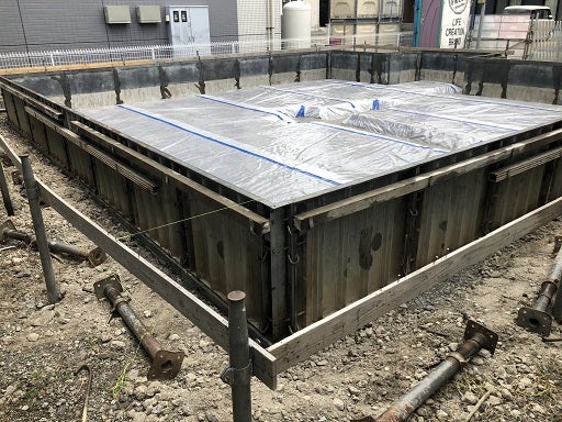 そして捨てコンクリートを打設し、外周部分の型枠を組み終わりました。