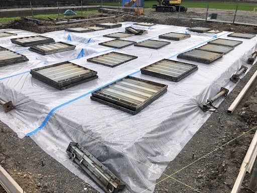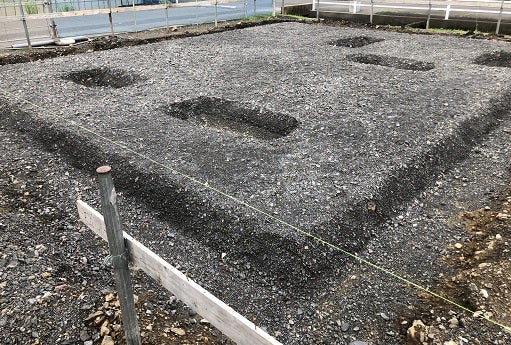 この状態で土壌処理工事をし、防湿シートの施工を進めます。