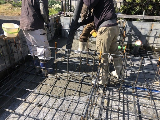 生コン車が現場に到着し伝票にてコンクリートの強度を確認し、打設スタートです。