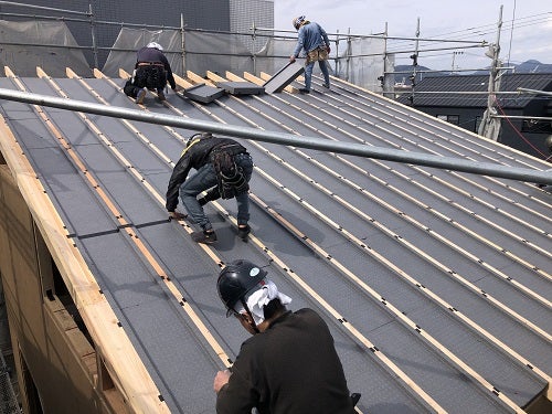 最後に野地板を貼りその上にルーフィングを敷いて上棟作業完了です\(^o^)/