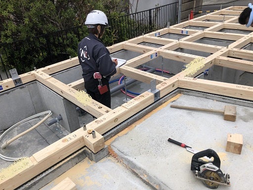 土台及び大引きの施工まで終了した段階で第三者の現場監査を受けました。