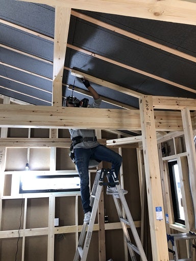 棟梁は、2階の勾配天井部分の下地の作成と