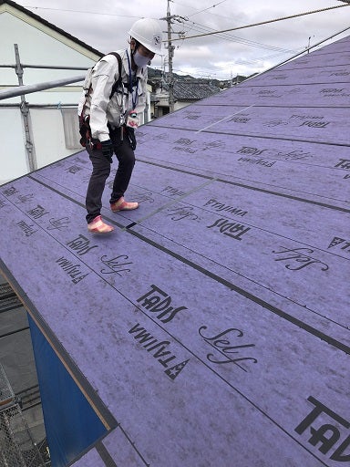 上棟後、工事は順調に進んでいます。屋根の防水工事が終了したので、早速第三者の現場監査を受けました。