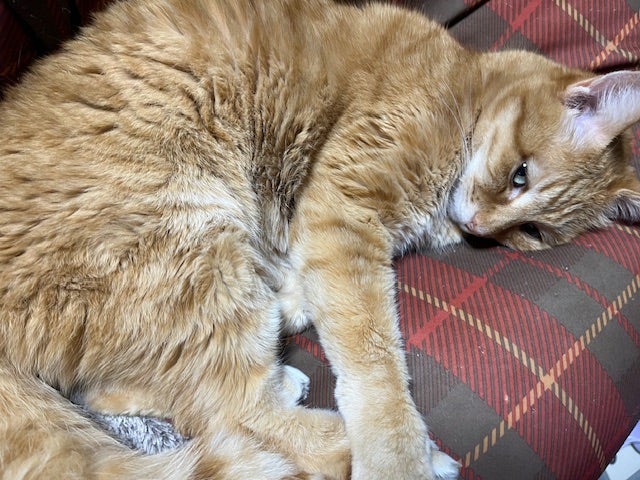 さて我が家のにゃんズ 最近のお気に入りはの場所は・・・・ビーズクッションの上と