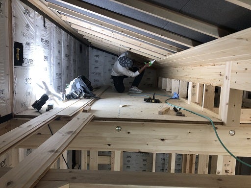 現在ロフト部分を進めています。天井が貼り終わると、1階より床板を貼っていく予定です。こちらも楽しみですね。
