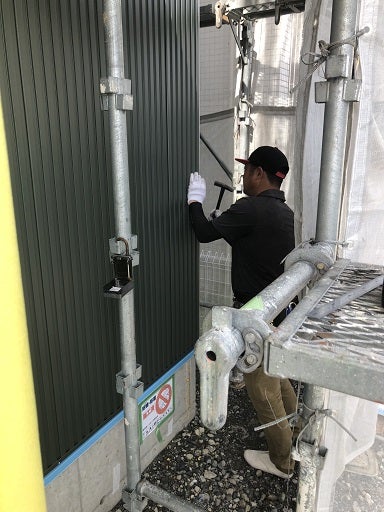 外部は引き続き外壁貼り工事を進めています。