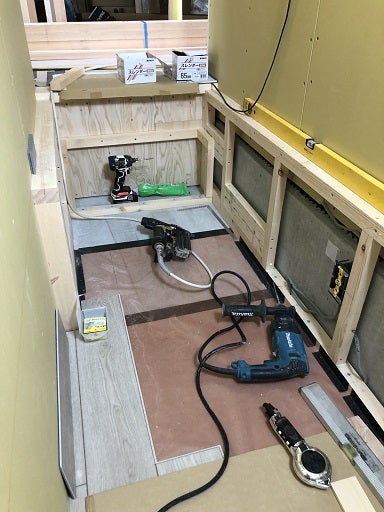 木工事は順調に進んでいます。棟梁はインサイドストッカーの造作を進めました。