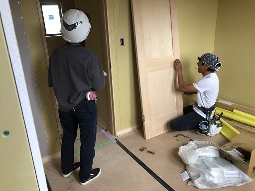 棟梁は造作工事が終了し、各部屋の建具の取付や