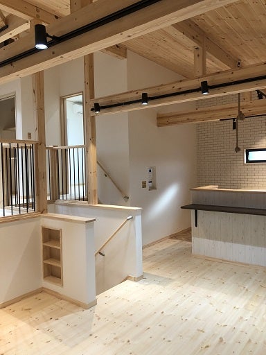 床の養生が撤去され、一面に広がる無垢の床板が見れるようになりました。更に木の香りに包まれた気持ちのいい空間になりました。