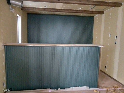 こちらはキッチンのアクセントになる壁です。外壁材と同じガルバリウムで仕上げました!とても斬新でかっこいいです。!(^^)!来週キッチンが取り付けられ、外部足場も撤去予定です。全景がみれるようになるのを楽しみにしていてください!