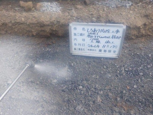 転圧が終わると白蟻の土壌処理を行い、防湿シートを敷き詰めて、捨てコンクリートの打設を進めました。