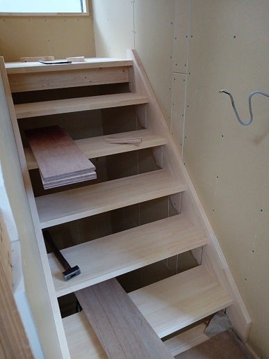 階段の裏側も補強材を入れて頑丈に作っていきます。
