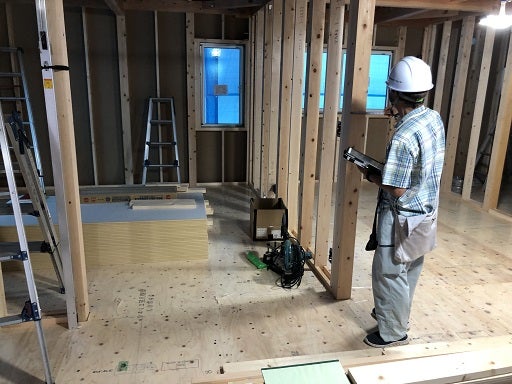 この後、外部の透湿防水紙の施工及び外壁下地の施工を進め、断熱材の充填工事を進めていく予定です。