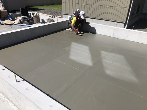 その上にモルタルを均していきます。夏場は乾きが早いので、注意しながら金鏝で平らに仕上げます。