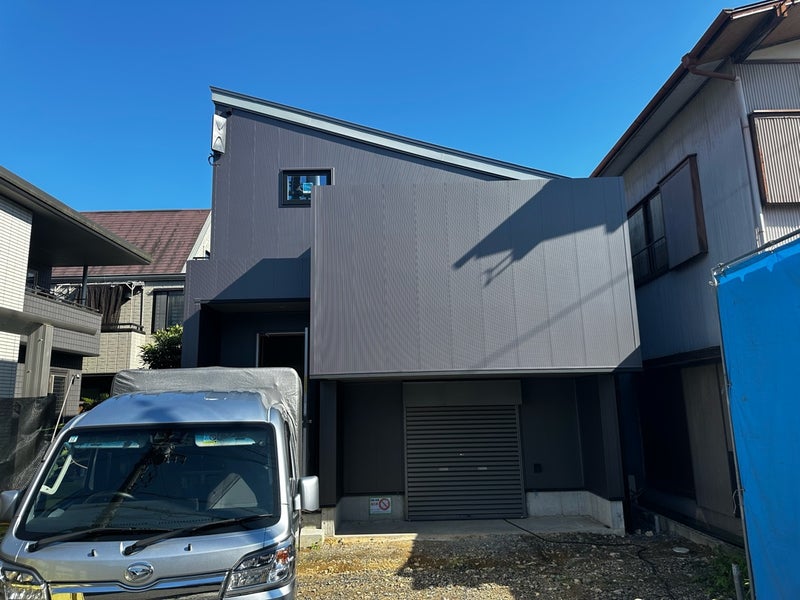 ガンメタリック色のスッキリした外観でとてもかっこいいですね!バルコニーのハイウォールも良いアクセントになっているとおもいます!
