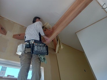 壁から化粧梁や火打ち梁、固定棚などの突起物がある場所は、職人さんの腕の見せ所!