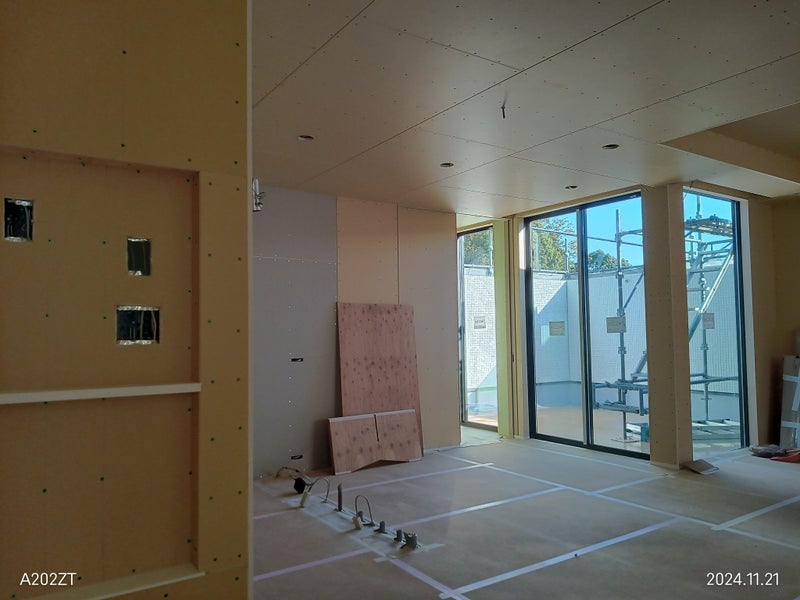 こんにちは!福本です。静岡市清水区 O様邸です。木工事は順調に進み今月中にはほぼ完成する予定です。部屋の入口の建具枠の設置が終わり壁のプラスターボード張りも終了しました。