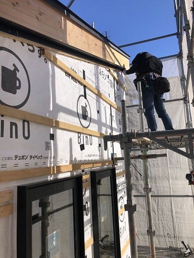 各種部材の取付が完了したらいよいよ外壁の施工に取り掛かります。