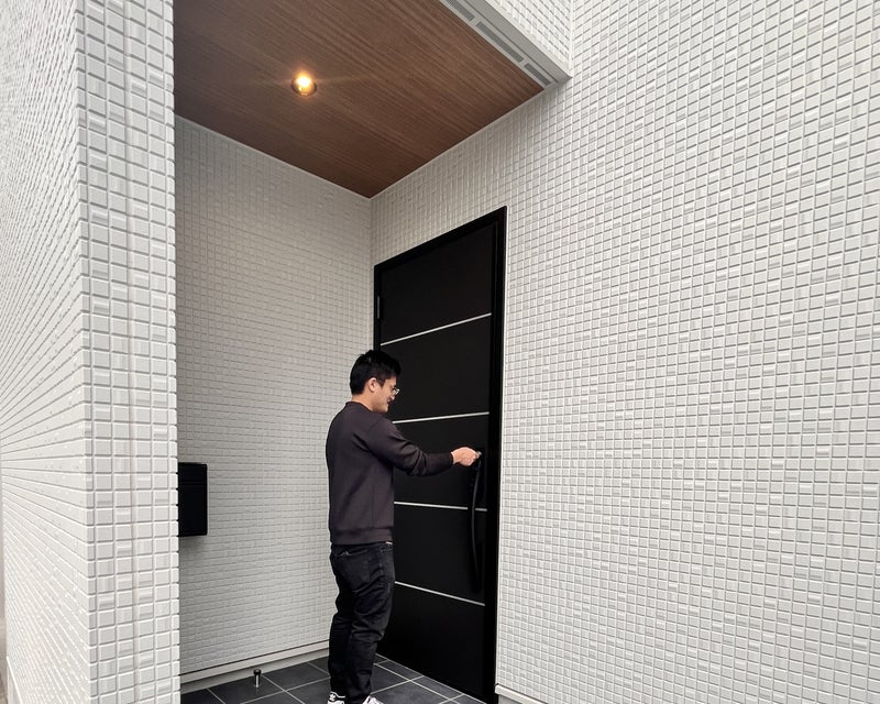 お引渡し当日、最初に私からお客様へ各設備の使い方や保証関係のご案内をさせて頂き…恒例の開錠の儀。