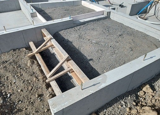基礎工事、立ち上がりコンクリートの養生期間が終了し型枠が撤去され綺麗で強固な基礎が出来上がりました。