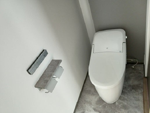 そして、転倒防止策として機器備え付けのアンカー設置も行います。室内ではトイレの取付が完了してます。