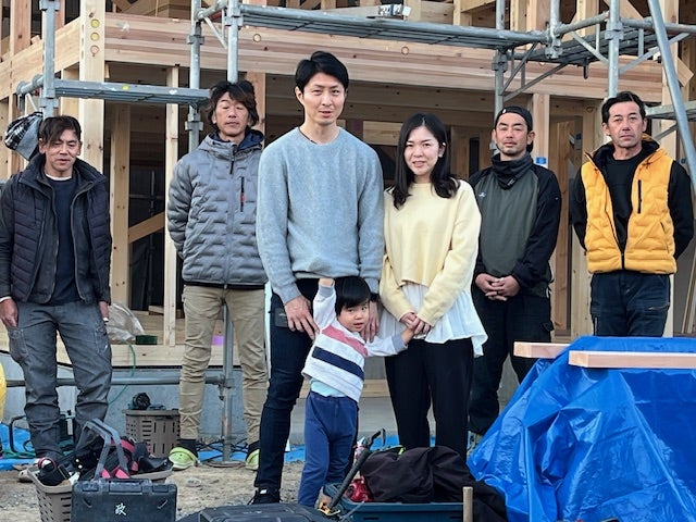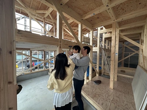 K様(ご家族の皆様)おめでとうございます(^^)/基礎だけの時は、小さく感じられたとのことで!上棟して建物の大きさをご実感頂き、良かったです。(*^-^*)