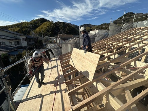 上棟作業完了です!さすが西ヶ谷棟梁はじめ熟練大工集団。いつもありがとうございます(*^-^*)
