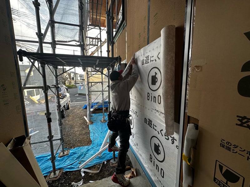 外部部の防水紙の施工を行いました。