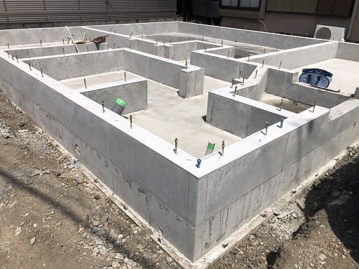 全ての型枠の撤去が終わり、綺麗でかつ強固なコンクリート基礎が現れました。とても安心感があります。これにて主要な基礎工事は終了です。
