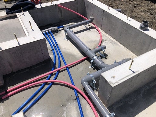 玄関及びポーチのコンクリート下地工事や内部外部の給排水配管工事を進めました。