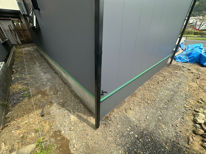 基礎巾木の仕上げ工事も行いました。コンクリート打ちっぱなし状態だったのがキレイに塗装されました。来週には玄関ポーチのタイルも施工される予定です。
