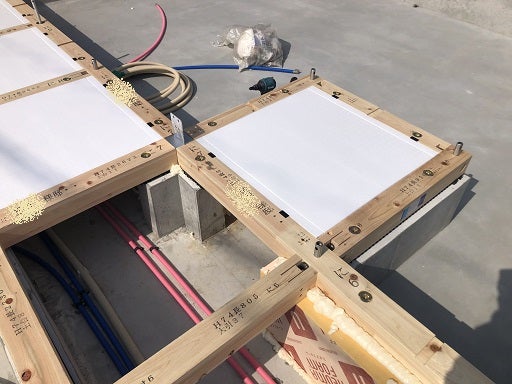 そして床下断熱材及び基礎断熱材を施工します。隙間なく充填していきます。