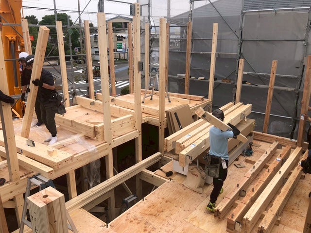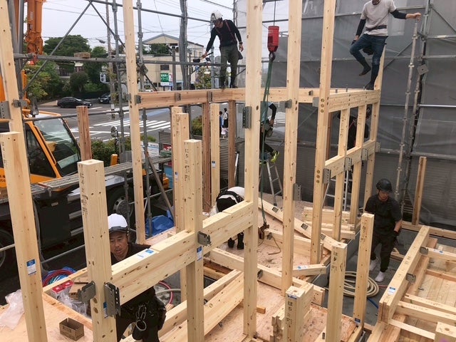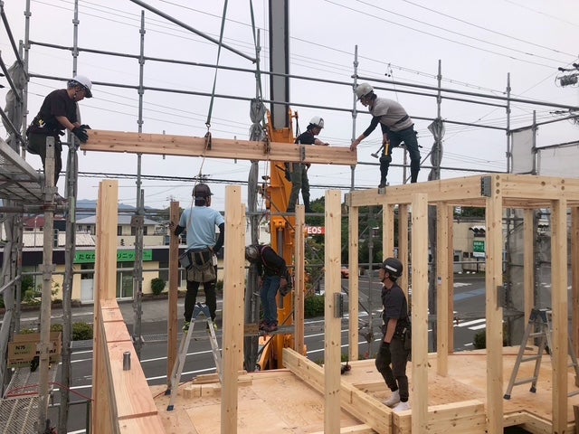 次々に柱や梁がくみ上げられていきます。