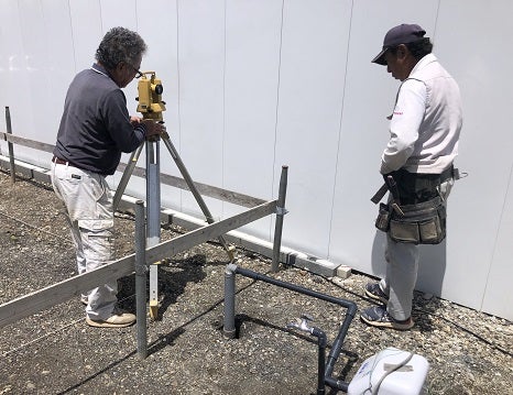 そして機械(レベル)を使い杭に基準となる高さを出していきます。