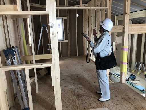上棟後順調に工事が進み、窓サッシの取付や外部の耐力面材の施工内部の柱や梁の緊結や床合板の施工等の主要構造部分の施工が完了したので早速社内の構造躯体検査を実施しました。