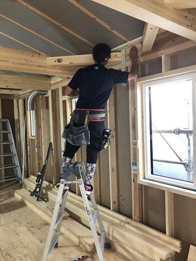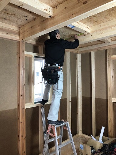 工事は棟梁が各下地の取付工事を進め、天井下地組みの準備を開始しました。