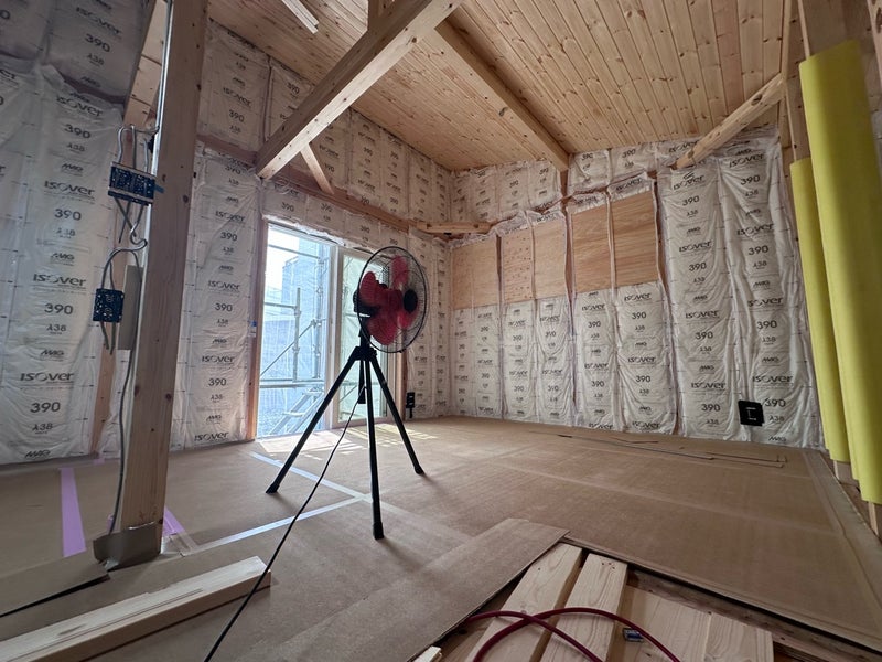 外部では外壁材の下地となる通気胴縁を施工しています。来週は外部の防水シートの監査を行い、半ば頃から外壁材本体を貼り始める予定です。どんな外壁が貼られるのか楽しみにしていてください!
