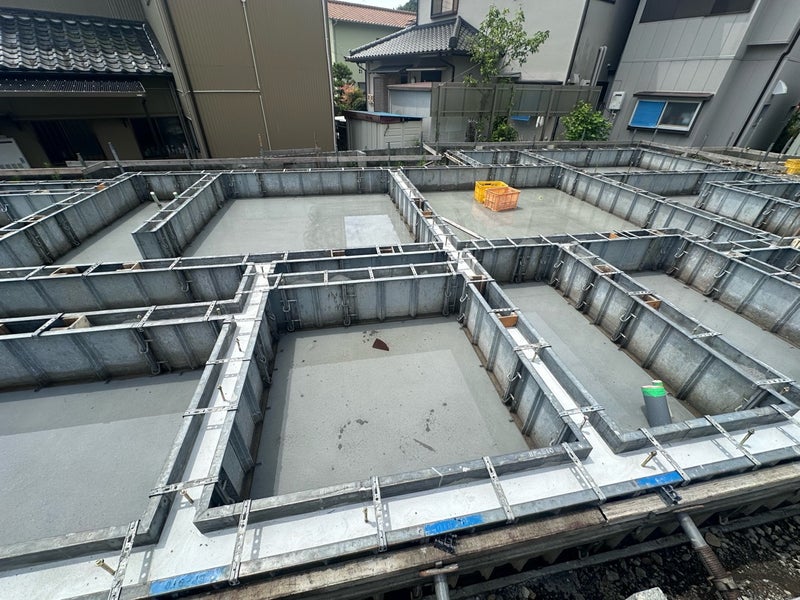 生コン打設が完了しました。この後は強度が出るまで養生を行い、型枠を外したら基礎は9割完成です。上棟まであと少し、楽しみですね!