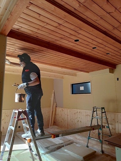 塗る前は無垢のパイン材の明るめの色合いでしたが、室内の雰囲気がガラリと変わりました!