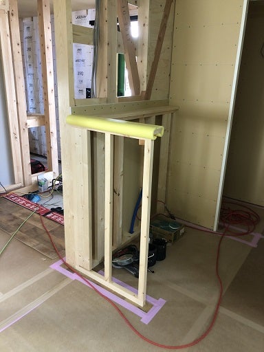 造作洗面台の壁下地の施工も完了です。
