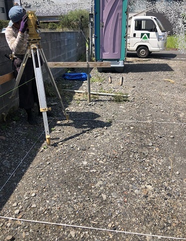 設定GLの位置を確認しその杭に基準となる高さを印していきます。