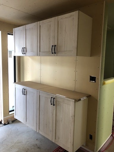 内部も外部も工事は順調に進んでいます。棟梁は壁のプラスターボード張り終了後、最終の造作工事を進めました。